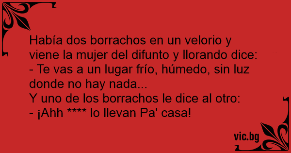 Había dos borrachos en un velorio y viene la mujer del difunto y llorando dice: