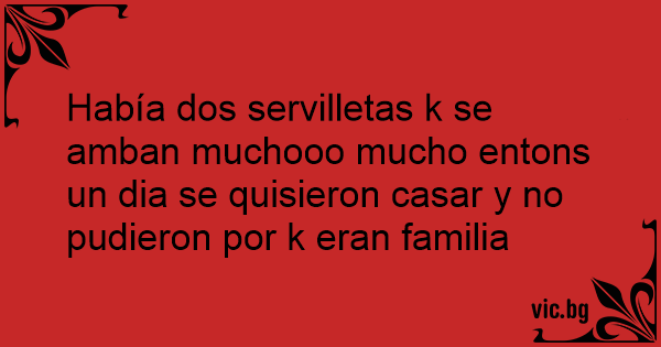 Había dos servilletas k se amban muchooo mucho entons un dia se quisieron casar y no pudieron por k eran familia