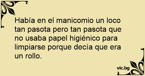 Había en el manicomio un lосо tan pasota pero tan pasota que no usaba papel higiénico para limpiarse porque decía que era un rollo.