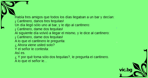 Al siguiente día volvió a llegar el mismo, y le dice al cantinero: