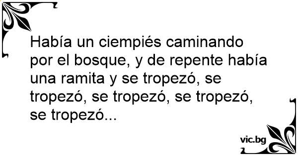 Había un ciempiés caminando por el bosque, y de repente había una ramita y se tropezó, se tropezó, se tropezó, se tropezó, se tropezó...
