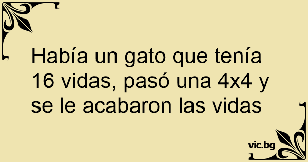 Había un gato que tenía 16 vidas, pasó una 4x4 y se le acabaron las vidas