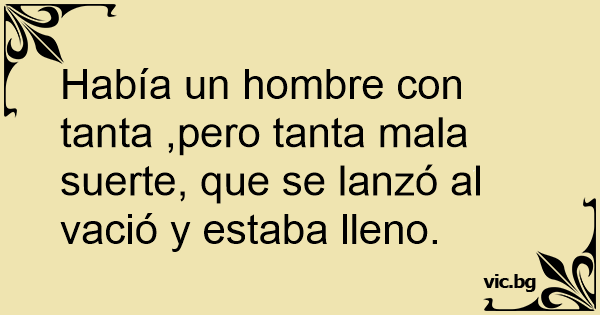 Había un hombre соn tanta ,pero tanta mala suerte, que se lanzó al vació y estaba lleno.