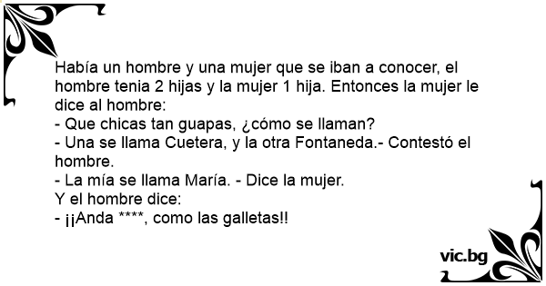 Había un hombre y una mujer que se iban a conocer, el hombre tenia 2 hijas y la mujer 1 hija. Entonces la mujer le dice al hombre: