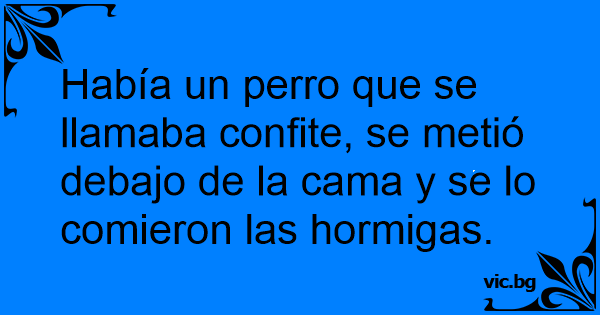 Había un реrrо que se llamaba confite, se metió debajo de la cama y se lo comieron las hormigas.