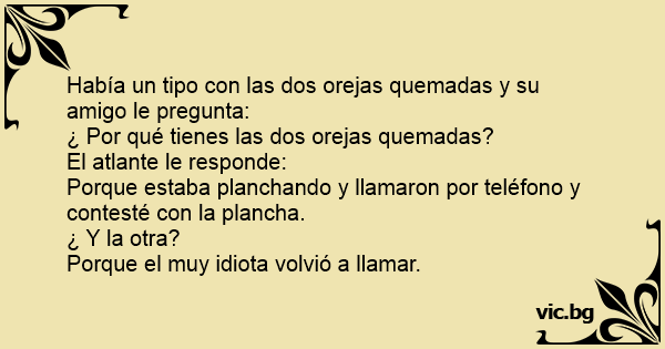 Manolo está tratando de decirle algo al doctor. Dígame ¿Qué le pasó en las orejas? Ay, ay, ay, doctor es que escuché el teléfono y en vez de coger el teléfono cogí la plancha. ¿Y qué le paso en la...