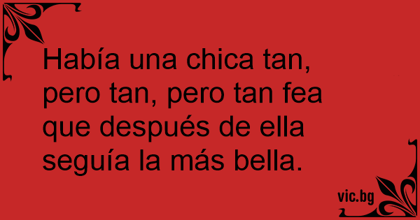 Había una chica tan, pero tan, pero tan fea que después de ella seguía la más bella.