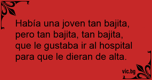 Había una joven tan bajita, pero tan bajita, tan bajita, que le gustaba ir al hospital para que le dieran de alta.
