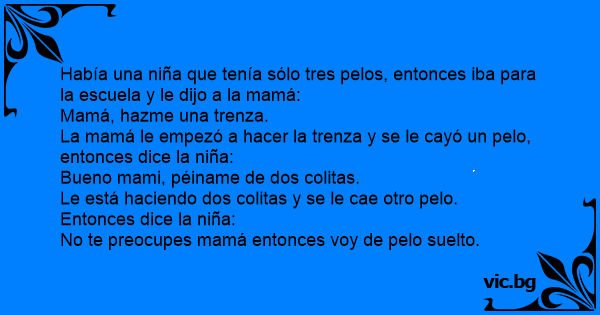Había una niña que tenía sólo tres pelos, entonces iba para la escuela y le dijo a la mamá: