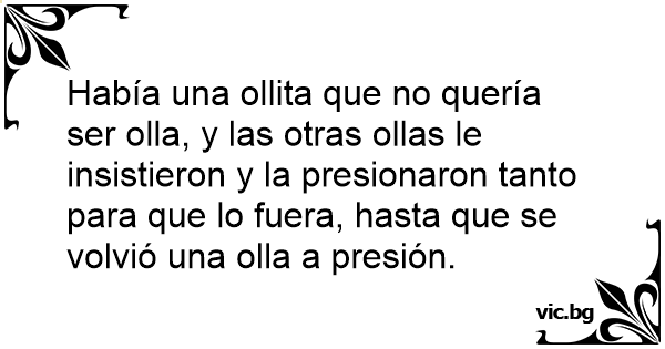 Había una ollita que no quería ser olla, y las otras ollas le insistieron y la presionaron tanto para que lo fuera, hasta que se volvió una olla a presión.