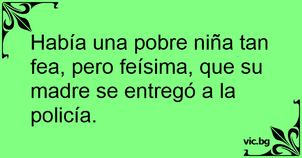 Había una pobre niña tan fea, pero feísima, que su madre se entregó a la policía.
