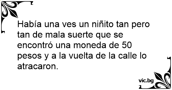 Había una ves un niñito tan pero tan de mala suerte que se encontró una moneda de 50 pesos y a la vuelta de la calle lo atracaron.