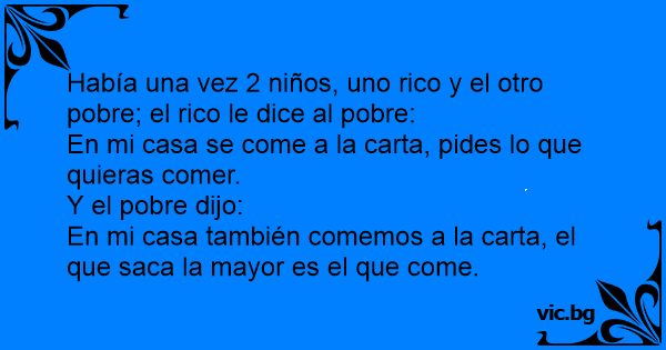Había una vez 2 niños, uno rico y el otro pobre; el rico le dice al pobre: