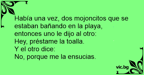 Había una vez, dos mojoncitos que se estaban bañando en la playa, entonces uno le dijo al otro: