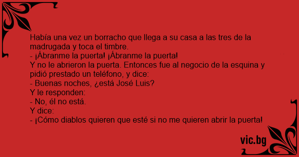 Había una vez un borracho que llega a su casa a las tres de la madrugada y toca el timbre.