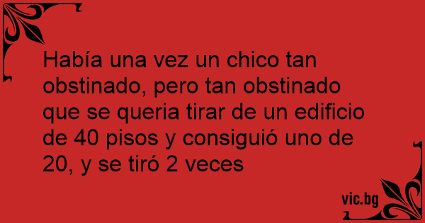 Había una vez un chico tan obstinado, pero tan obstinado que se queria tirar de un edificio de 40 pisos y consiguió uno de 20, y se tiró 2 veces