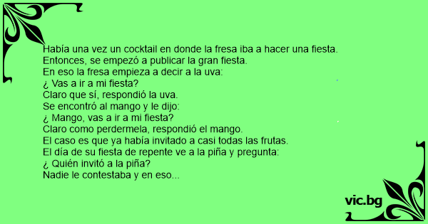 Había una vez un cocktail en donde la fresa iba a hacer una fiesta. Entonces, se empezó a publicar la gran fiesta.