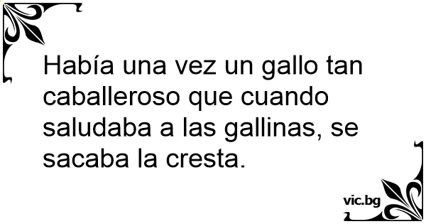 Había una vez un gallo tan caballeroso que cuando saludaba a las gallinas, se sacaba la cresta.