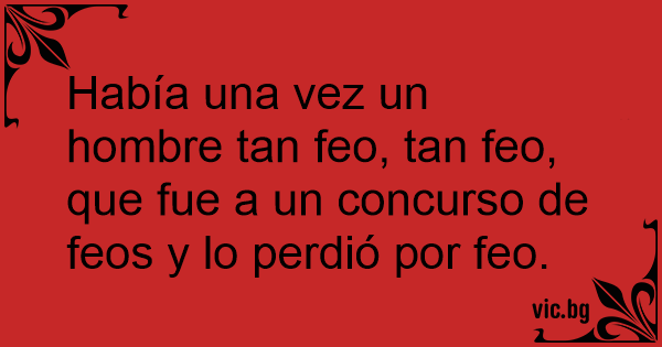Había una vez un hombre tan feo, tan feo, que fue a un concurso de feos y lo perdió por feo.