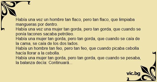 Había una mujer tan gorda, pero tan gorda, que cuando se pesaba, la balanza decía: Continuará...