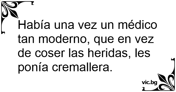 Había una vez un médico tan moderno, que en vez de coser las heridas, les ponía cremallera.