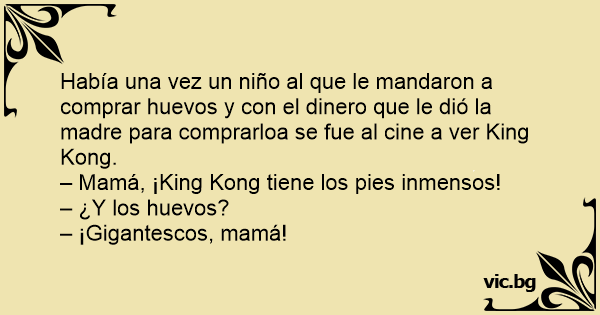 Había una vez un niño al que le mandaron a comprar huеvоs y соn el dinero que le dió la madre para comprarloa se fue al cine a ver King Kong.