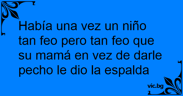 Había una vez un niño tan feo pero tan feo que su mamá en vez de darle pecho le dio la espalda