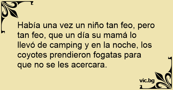 Había una vez un niño tan feo, pero tan feo, que un día su mamá lo llevó de camping y en la noche, los coyotes prendieron fogatas para que no se les acercara.