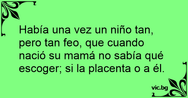 Había una vez un niño tan, pero tan feo, que cuando nació su mamá no sabía qué escoger; si la placenta o a él.