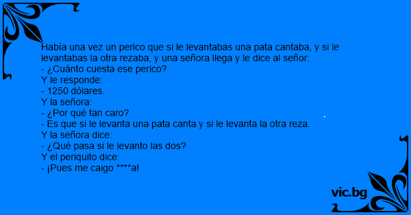 Había una vez un perico que si le levantabas una pata cantaba, y si le levantabas la otra rezaba, y una señora llega y le dice al señor: