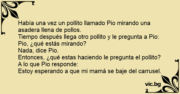 Tiempo después llega otro pollito y le pregunta a Pio: