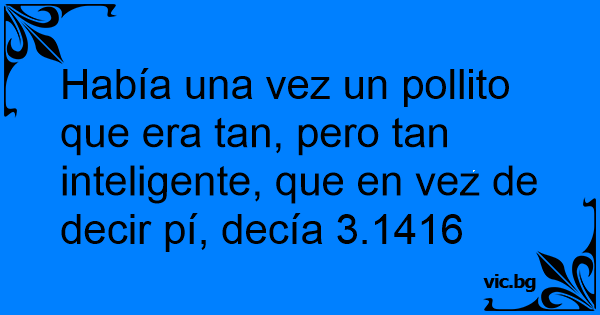 Había una vez un pollito que era tan, pero tan inteligente, que en vez de decir pí, decía 3.1416