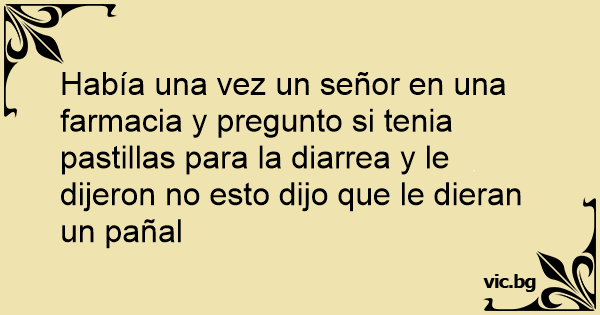 Había una vez un señor en una farmacia y pregunto si tenia pastillas para la diarrea y le dijeron no esto dijo que le dieran un pañal