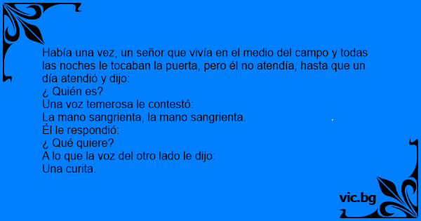 Había una vez, un señor que vivía en el medio del campo y todas las noches le tocaban la puerta, pero él no atendía, hasta que un día atendió y dijo: