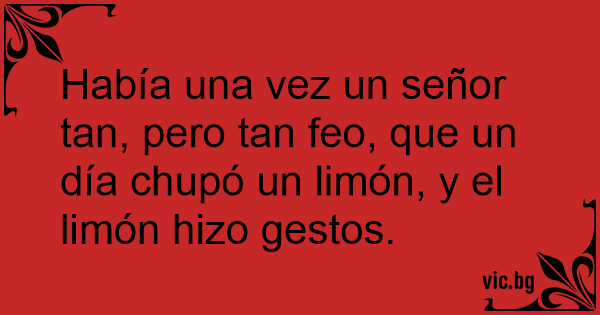 Había una vez un señor tan, pero tan feo, que un día chupó un limón, y el limón hizo gestos.