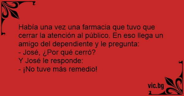 Había una vez una farmacia que tuvo que cerrar la atención al público. En eso llega un amigo del dependiente y le pregunta: