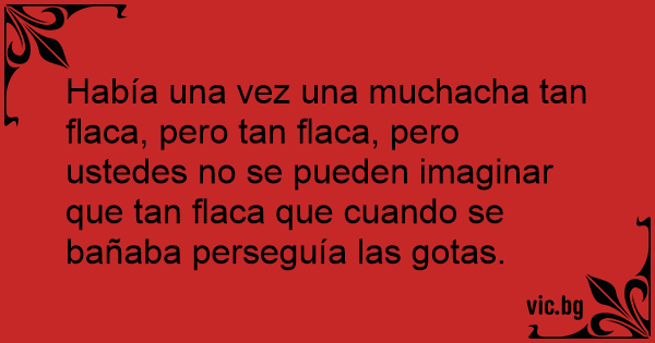 Había una vez una muchacha tan flaca, pero tan flaca, pero ustedes no se pueden imaginar que tan flaca que cuando se bañaba perseguía las gotas.