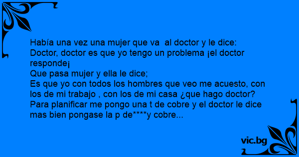 Para planificar me pongo una t de cobre y el doctor le dice mas bien pongase la p de****y cobre...