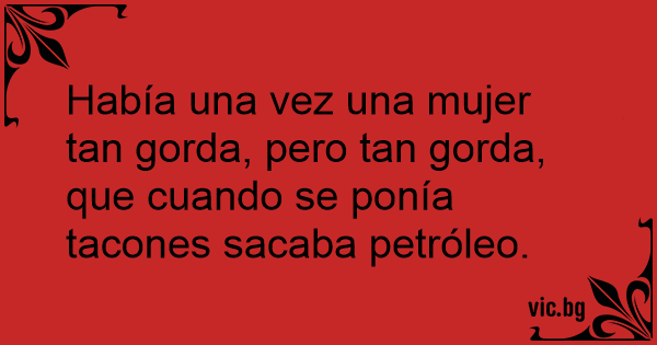 Había una vez una mujer tan gorda, pero tan gorda, que cuando se ponía tacones sacaba petróleo.