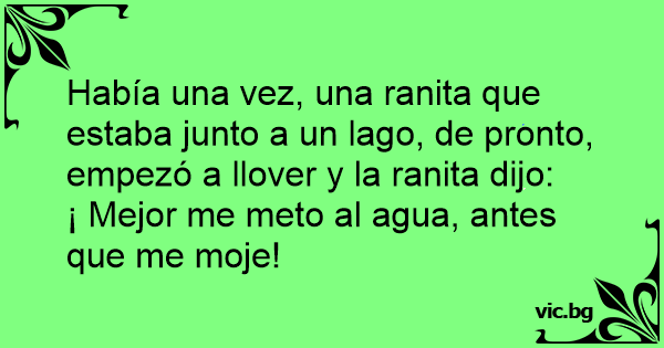 Había una vez, una ranita que estaba junto a un lago, de pronto, empezó a llover y la ranita dijo: