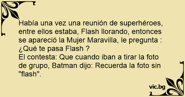 Había una vez una reunión de superhéroes, entre ellos estaba, Flash llorando, entonces se apareció la Mujer Maravilla, le pregunta : ¿Qué te pasa Flash ?