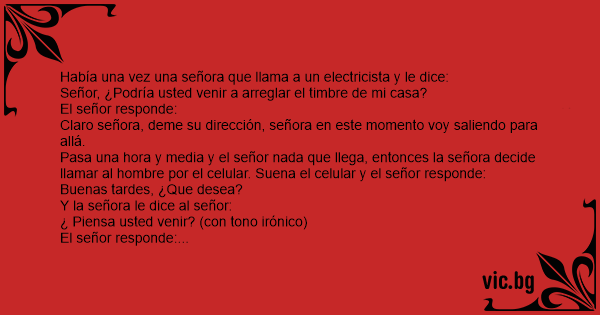 Había una vez una señora que llama a un electricista y le dice: