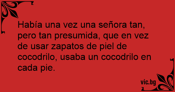 Había una vez una señora tan, pero tan presumida, que en vez de usar zapatos de piel de cocodrilo, usaba un cocodrilo en cada pie.