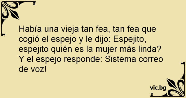 Había una vieja tan fea, tan fea que cogió el espejo y le dijo: Espejito, espejito quién es la mujer más linda?