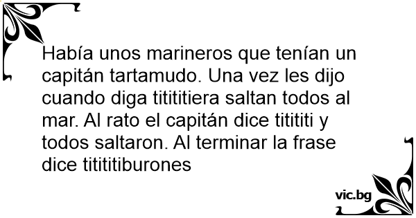 Había unos marineros que tenían un capitán tartamudo. Una vez les dijo cuando diga titititiera saltan todos al mar. Al rato el capitán dice titititi y todos saltaron. Al terminar la frase dice titititiburones