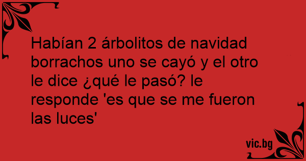 Habían 2 árbolitos de navidad borrachos uno se cayó y el otro le dice ¿qué le pasó? le responde 'es que se me fueron las luces'