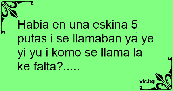 Habia en una eskina 5 putas i se llamaban ya ye yi yu i komo se llama la ke falta?.....