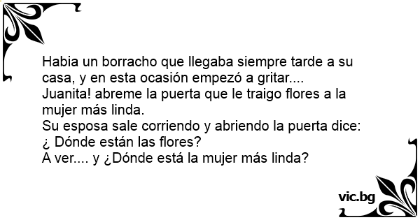 Habia un borracho que llegaba siempre tarde a su casa, y en esta ocasión empezó a gritar....