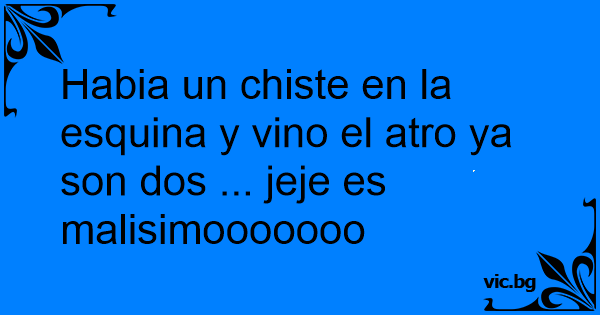 Habia un chiste en la esquina y vino el atro ya son dos ... jeje es malisimooooooo