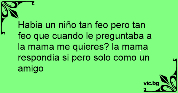 Habia un niño tan feo pero tan feo que cuando le preguntaba a la mama me quieres? la mama respondia si pero solo como un amigo